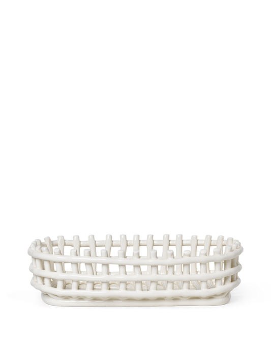 Ceramic Basket Oval Off White