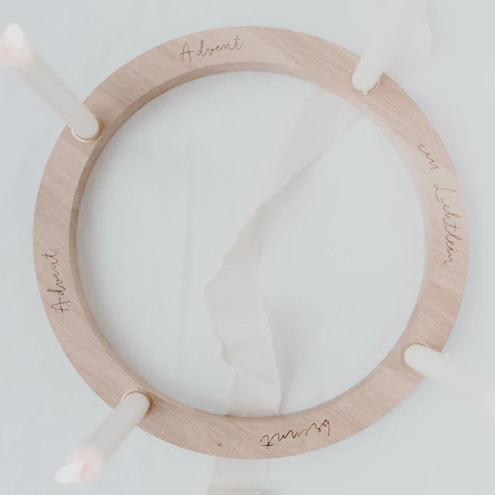 Runder Adventskranz aus Eichenholz gefertigt