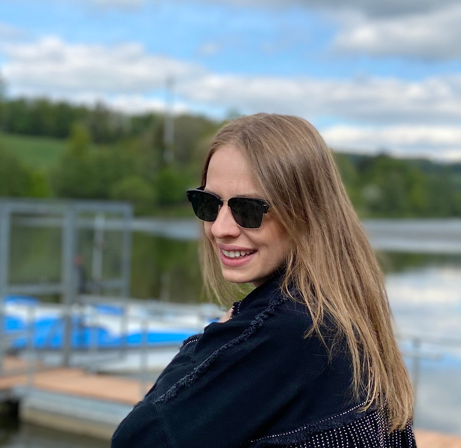 - trendige schwarze Sonnenbrille mit silbernen Details