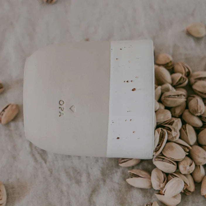 Wir haben sehr viel Herzblut in eine neue Kollektion gesteckt, die von der Form, dem Ton, dem Glazing, sowie dem Design von uns entwickelt wurde. Eine kleine Töpferei aus Portugal produziert diese wundervollen Becher in liebevoller Handarbeit & ist ein großartiger neuer Begleiter auf unserem kreativen Weg. Unsere BeCher lassen die Herzen höher schlagen, die die Individualität von Ton & Glasur lieben, denn jeder einzelne Becher hat seinen ganz eigenen Touch. Da alle Becher mit der Hand gefertigt, gebrannt, geprägt, abgeschliffen, geglazt & nochmal gebrannt werden, gibt es Unterschiede in der Drucktiefe, in der Höhe sowie der Geradlinigkeit. Das minimalistische Design und die natürlichen Farbnuancen werden von einer wunderschönen Blindprägung "Opa" abgerundet. Wir sind verliebt & voller purer Freude & können es kaum abwarten unsere neue Kollektion in Euren Händen zu sehen! Unser Becher Opa ist das perfekte Geschenk für jeden Opi!