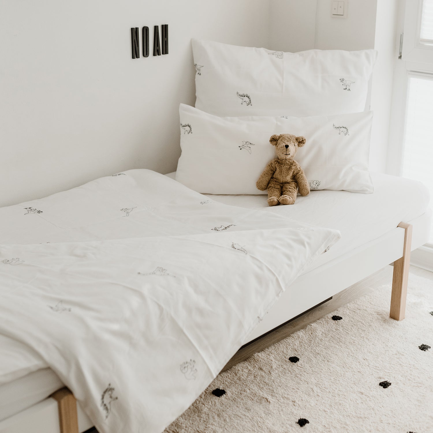 Endlich ist sie da, unsere Bettwäsche aus 100% nachhaltiger Bio Baumwolle – entdecke unsere Bettwäsche Dinosaurier.