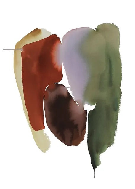 Blemish 01 der dänischen Künstlerin Berit Mogensen Lopez fängt den informellen Ausdruck visueller und struktureller Experimente ein. Konstruiert aus einer Reihe sich überlappender Aquarellformen, gleiten ihre fehlerhaften und gebrochenen Formen ineinander, um eine Komposition zu bilden, die scheint, als ob sie sich noch bewegt. Tiefere Braun- und Rottöne verflechten sich mit blassem Lavendel und gedämpften Grüntönen und bilden zusammen ein texturreiches Arrangement von Formen.