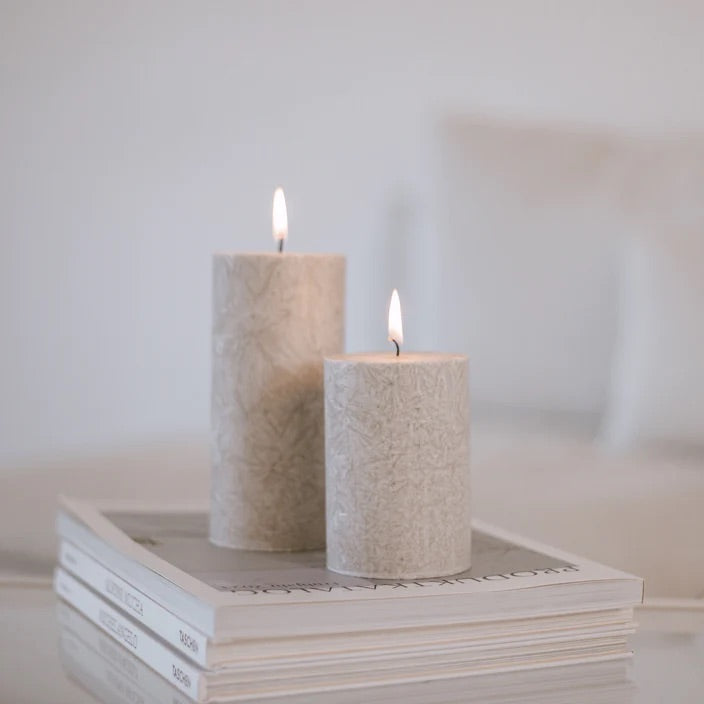 Neu in unserer Kerzenrubrik: pflanzliche Blockkerzen aus Olivenöl in verschiedenen Farben - wie unsere Blockkerze Olive in Grau. Durch das Wachs aus Olivenöl entsteht eine ganz besondere zarte Struktur, welches die Kerzen zu einem absoluten Blickfang machen. Sie haben einen Durchmesser von 7 cm und passen super in unsere Kerzenbretter. Auch toll: dekoriere die Kerzen auf Tabletts oder in Windlichtern, so schaffst du eine gemütliche Atmosphäre und verzauberst dein Zuhause in wunderollen Kerzenschein.