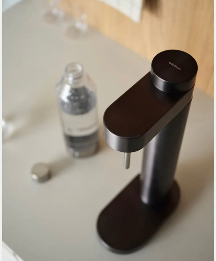 Mit dem Brus Wassersprudler ersparen Sie der Umwelt große Mengen an unnötigem Plastik, indem Sie Ihr eigenes Sodawasser oder Ihre eigene Limonade in wiederverwendbaren Flaschen herstellen. Das Design dieses Wassersprudlers ist so elegant, dass er auch sichtbar auf der Küchenzeile eine gute Figur macht. Sein Designer, Søren Refsgaard, ist bekannt für seine klaren, funktionalen Designs, bei denen alles Überflüssige weggelassen wird. Brus ist hierfür ein besonders gutes Beispiel. Das Design greift die für die Designs von Steltons klassischen zylindrischen Formen auf. Die zylindrische Form zeigt sich in erster Linie in dem ultraflachen Behälter für die Kohlensäurepatrone und findet sich im Kohlensäureknopf wieder. Dieser wird zum Einstellen der Kohlensäuremenge intuitiv im Uhrzeigersinn gedreht, und gegen den Uhrzeigersinn, wenn die Flasche vom Gerät getrennt werden soll. Zum Brus Wassersprudler erhalten Sie eine Brus Flasche.