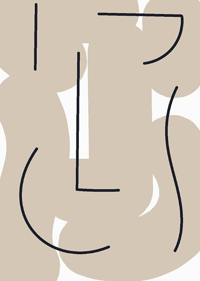 Different Strokes ist ein graphischer Kunstdruck von Nina Bruun, der eine abstrakte Komposition verwendet, um ein subtiles Gefühl von Tiefe zu erzeugen. Fette Linien in Beige fügen sich visuell in den weißen Hintergrund ein, während eine Reihe dünner schwarzer Linien einen kontrastierenden Punkt der Differenz bildet. Das Ergebnis ist ein einfacher grafischer Druck, der eine genauere Betrachtung erfordert.