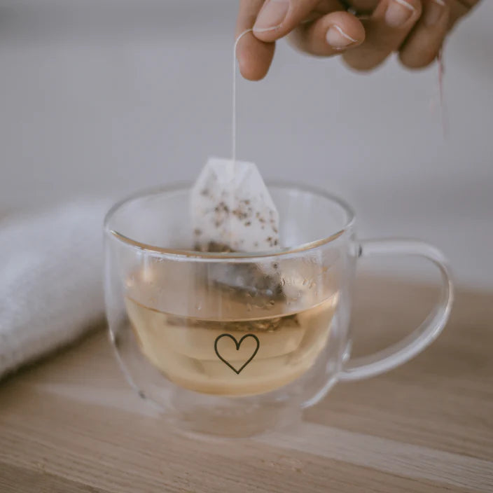 Das perfekte Teeglas Glas für deinen Tee am Morgen, Mittag oder Abend - unser doppelwandiges Glas Herz mit einem Füllvolumen von 250ml.