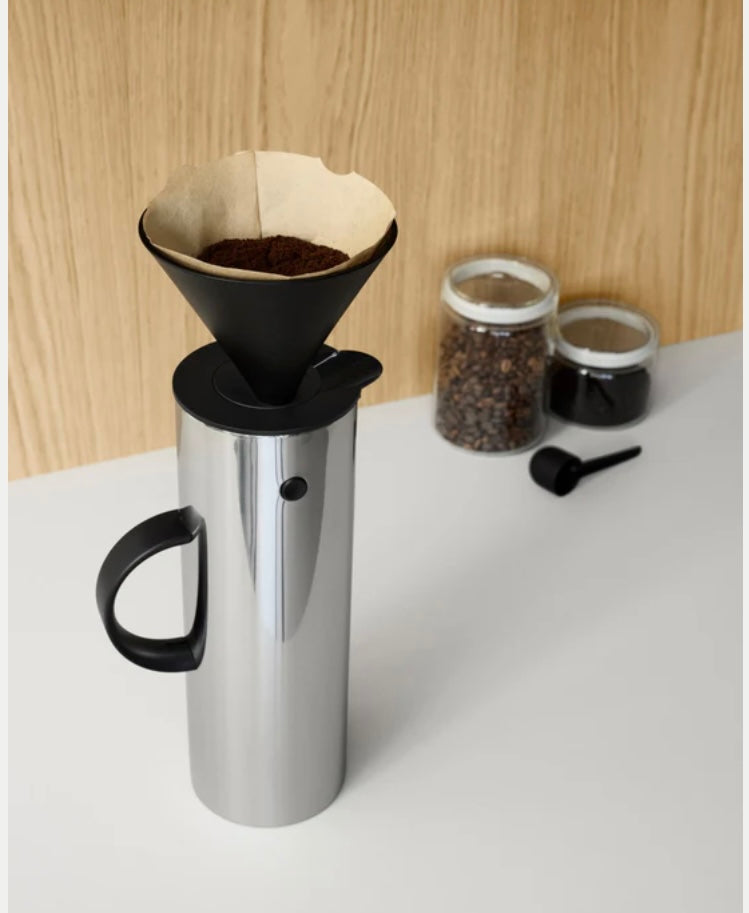 Beim Stelton Kaffeefilter handelt es sich um einen praktischen Universalfilter, der passend zu allen Stelton Isolierkannen entwickelt wurde: EM77, Emma und Amphora. Der Kaffeefilter ermöglicht es, Filterkaffee zuzubereiten und direkt in der Thermoskanne mit der Pour-Over- oder der Slow-Brew-Methode zu experimentieren. Bei der EM77 Isolierkanne wird der Filter mit leichtem Druck eingesetzt, während er bei den Isolierkannen Emma und Amphora eingeschraubt wird. Bei den Emma Isolierkannen passt der Kaffeefilter zu den Kannen, deren Öffnung einen Durchmesser von 55 mm hat. Der Kaffeefilter ist für Kaffeefilter der Größe 4 konzipiert.