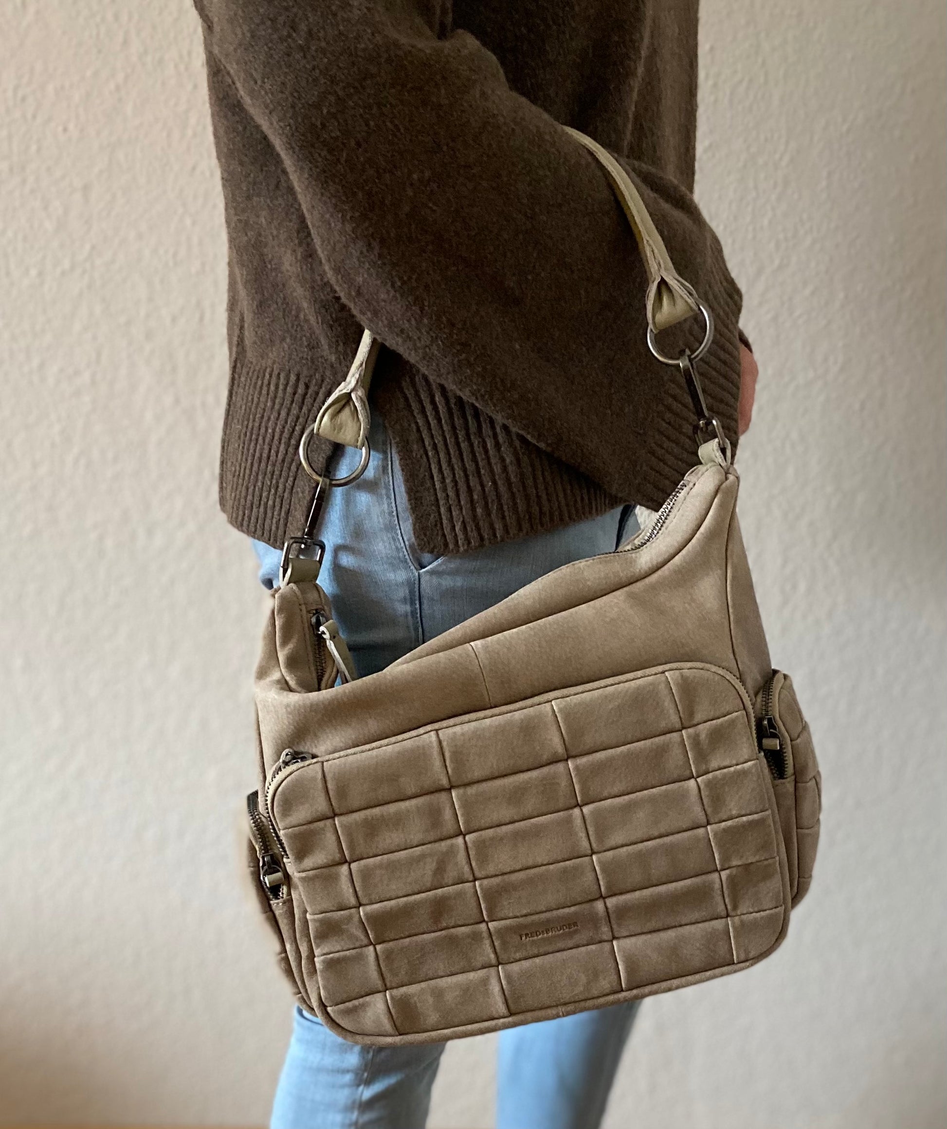 - Kurzer Schultergurt und abnehmbarer, verstellbarer Gurt