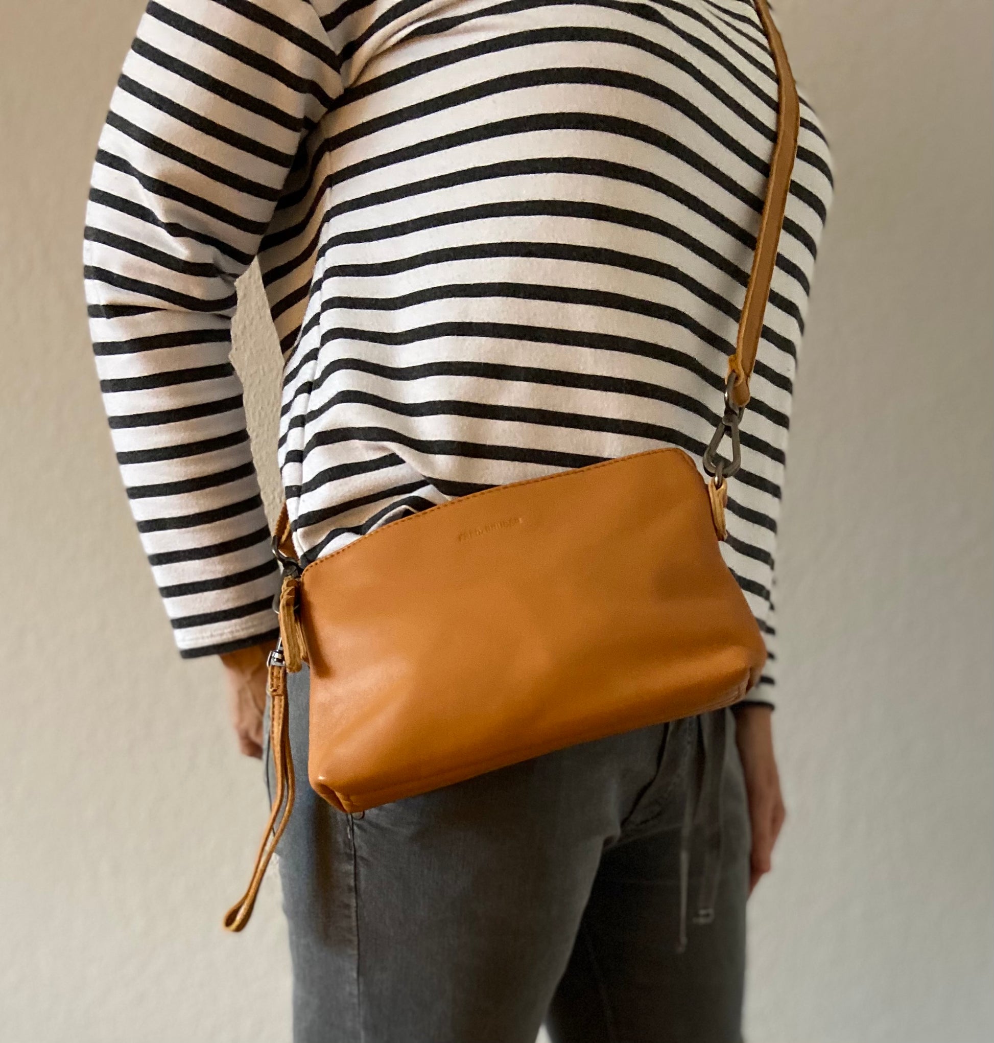 Die Tasche von FREDsBRUDER, im cleanen Design wird durch die Lederprägung und das Flechtdetail am Reißverschluss abgerundet. Die Tasche lässt sich im Handumdrehen von einer Umhängetasche mit variablem Schulterriemen in eine Clutch mit Handschlaufe verwandeln. Passt perfekt zu jedem Look und jedem Anlass.