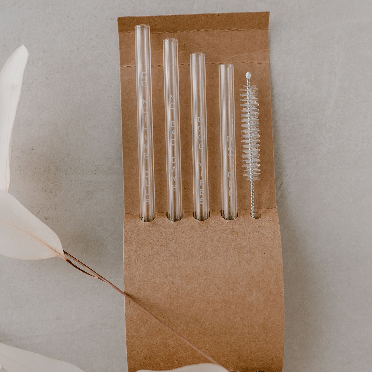 Entdeckt unsere wiederverwendbaren und wunderschönen Strohhalme No Bad Days aus Glas 20cm im 4er Set.