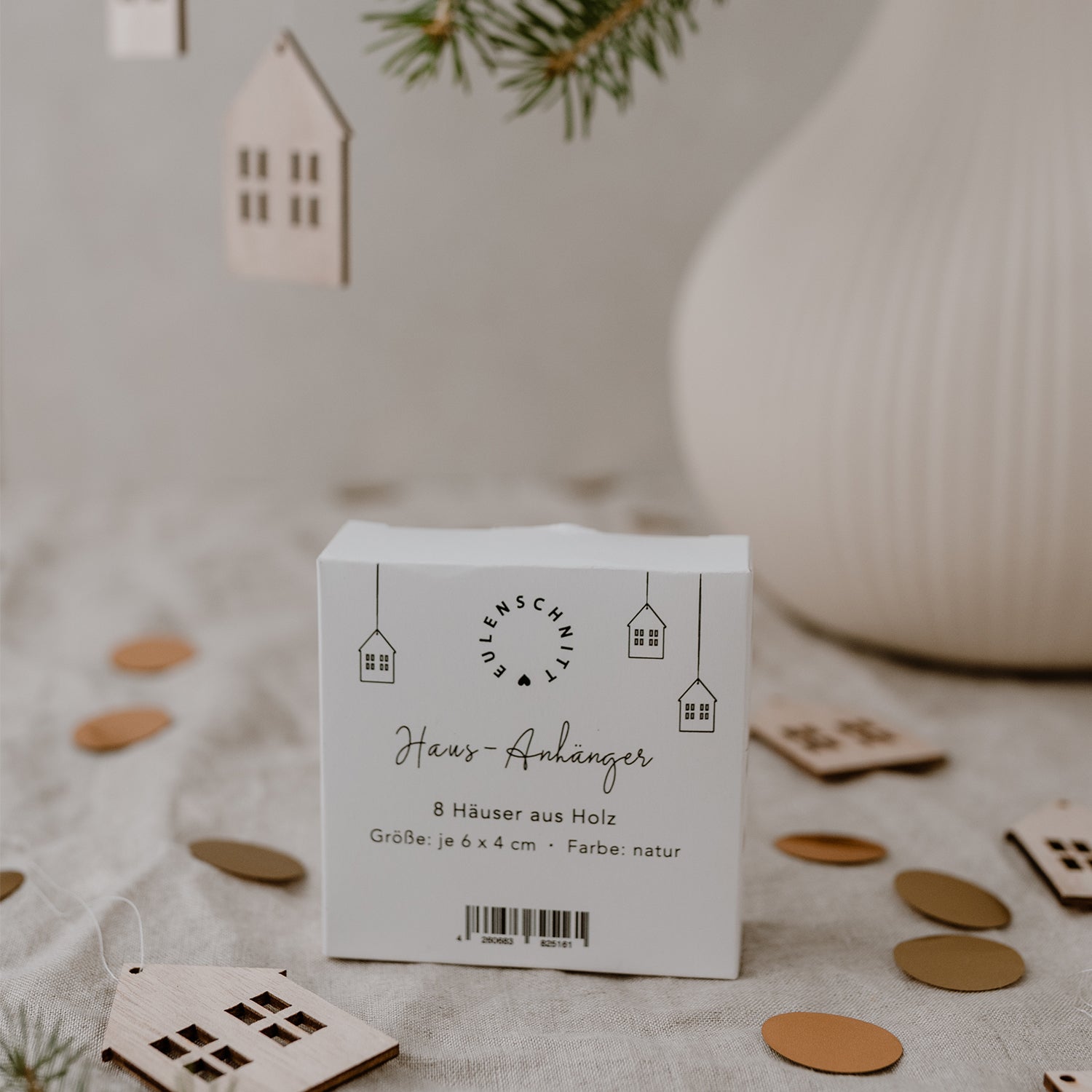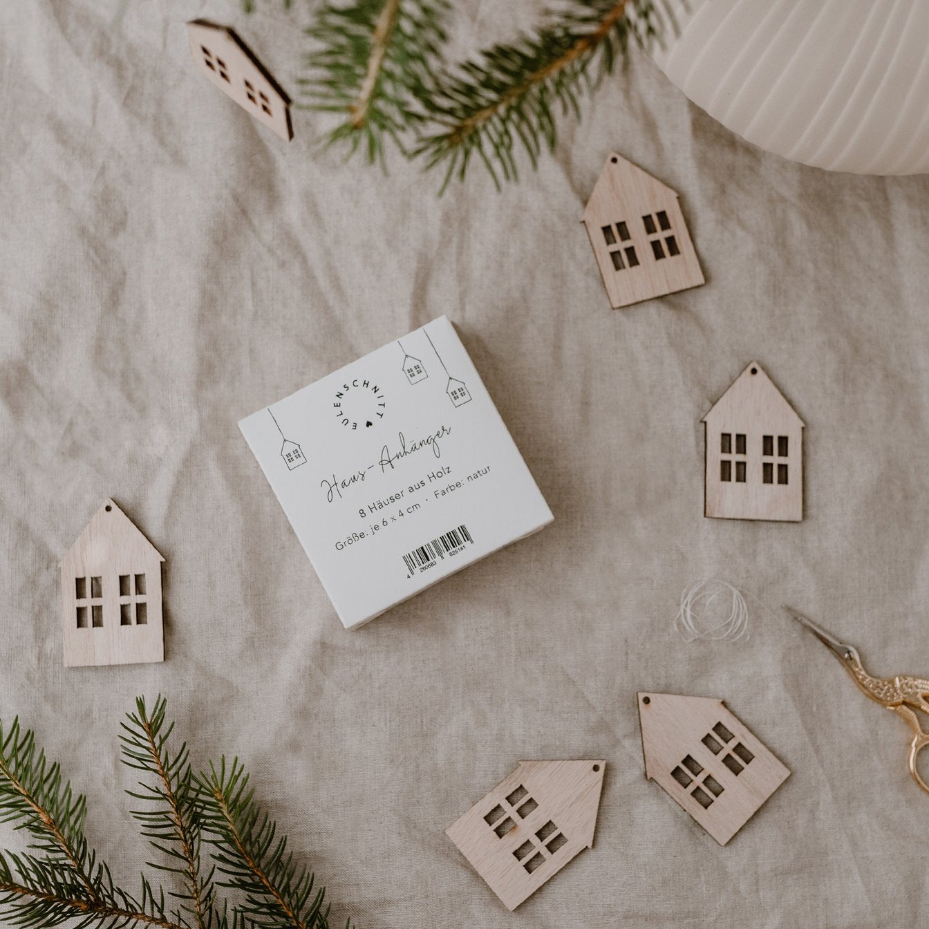 Endlich sind sie wieder da, unsere Holzanhänger Haus natur im 8er Set.