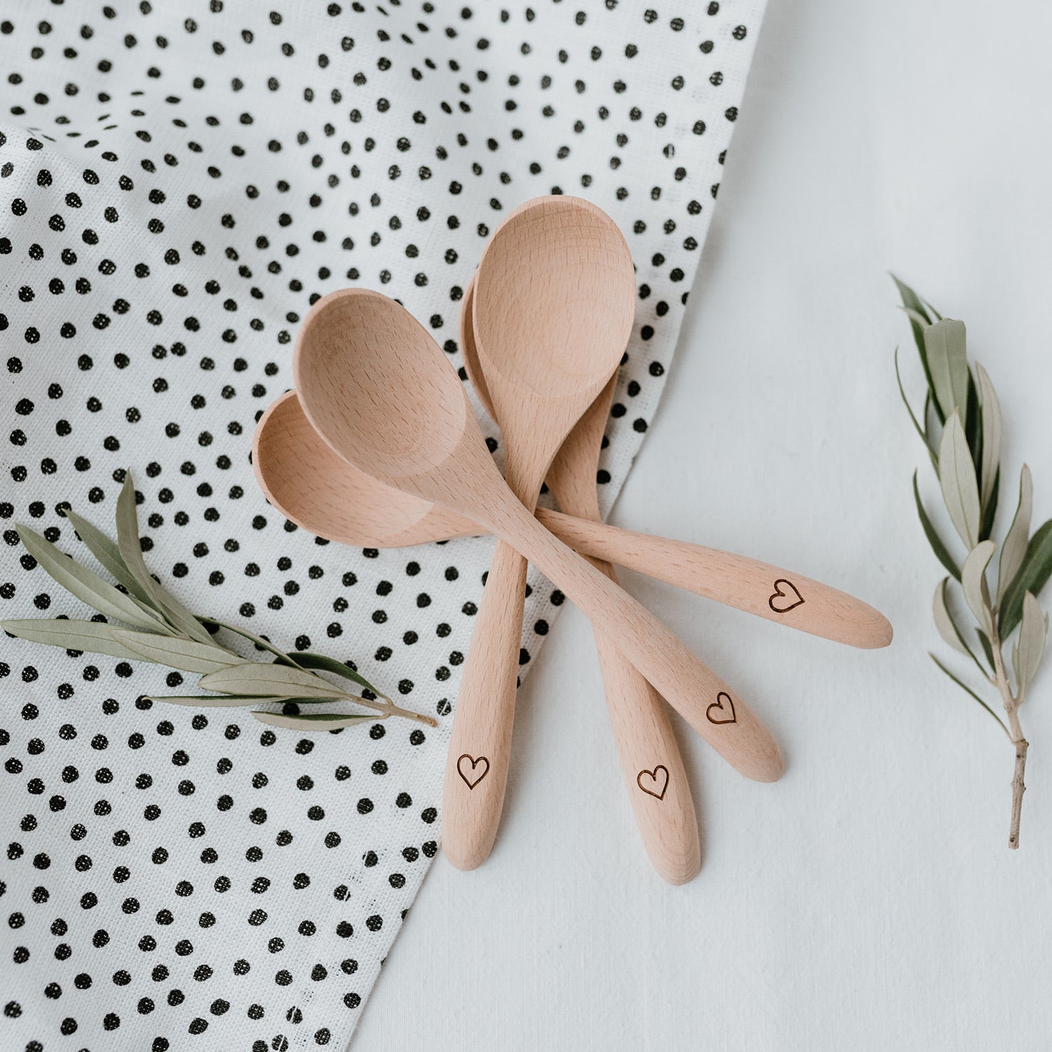 Unsere Holzlöffel im 4er Set aus Buchenholz sind ein absoluter Hingucker in Eurer Küche und einfach super zum Servieren am Tisch. Ob beim Brunch mit Freunden oder beim gemütlichen Abendbrot mit der Familie. Die Holzlöffel mit Herzgravur machen einfach immer etwas her. Auch für Vorratsgläser super, um Zucker, Mehl oder Ähnliches abzufüllen.