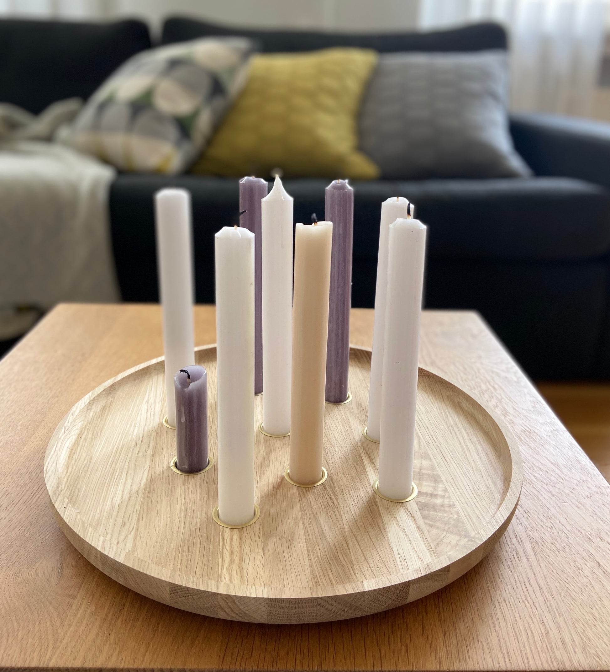 Mögt ihr gemütliches Kerzenlicht genauso sehr wie wir – dann werdet ihr unser rundes Kerzenbrett aus Eiche lieben!