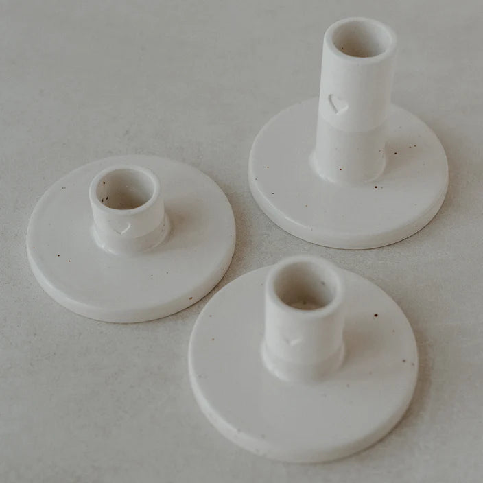 Verschenke Liebe mit unserem Kerzenständer Herz mittel. Unsere neuen handgefertigten Kerzenständer sind die ganz besondere Dekoration für deinen Wohlfühlort. Passend für Stabkerzen mit einem Durchmesser von 22mm und mit der ganz besonderen Herz Blindprägung, wird dein Zuhause in gemütliche Stimmung versetzt. Perfekt für romantische Abende, den gedeckten Esstisch oer auch die Dekoration für das Sideboard. Auch toll: unsere Herz Kerzenhalter sind die perfekte Tischdekoration für jede Hochzeit. Unseren Kerzenständer Herz gibt es in 3 verschiedenen Größen. Dekoriere zusammen und gestalte so eine wundervoll harmonische Atmosphäre.