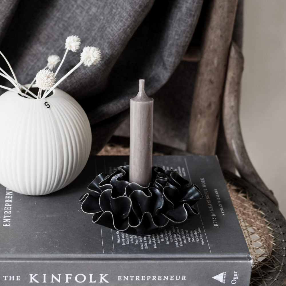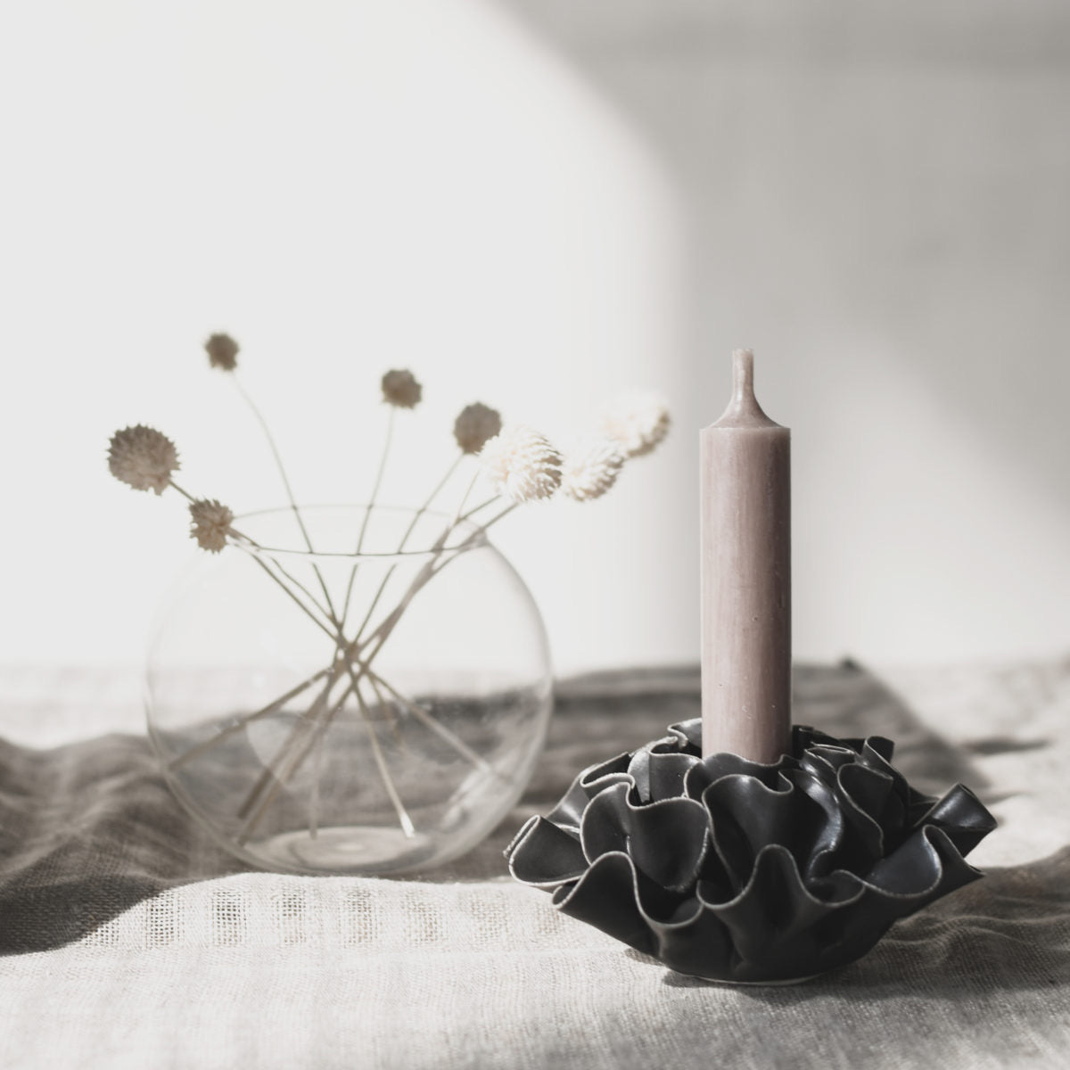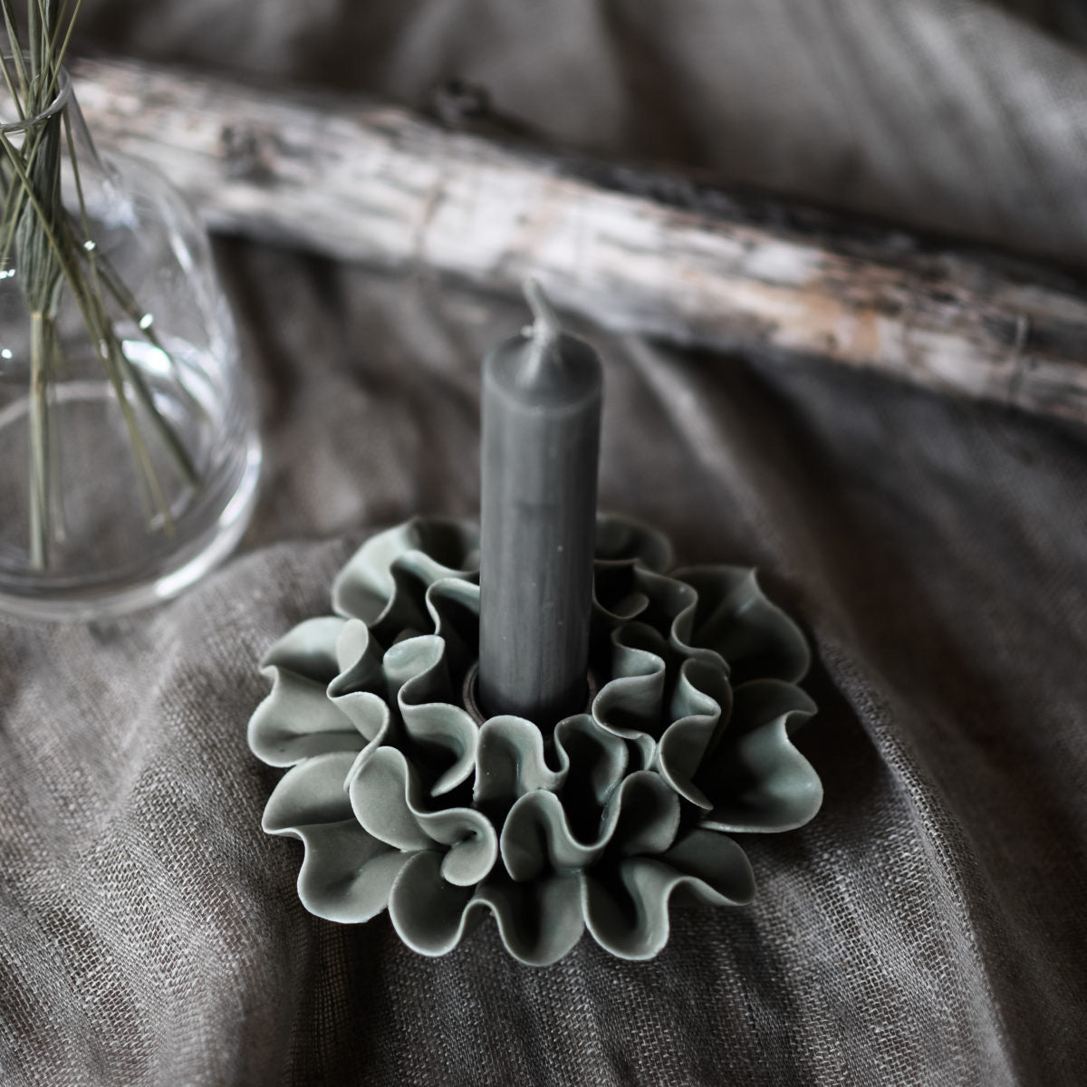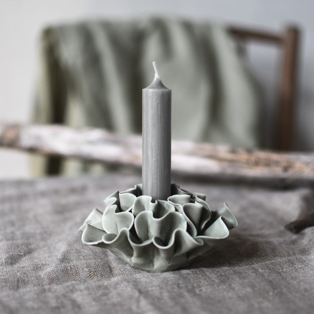 Kerzenhalter für Kronleuchter aus Keramik. Lekeryd ist eher ein Kunstwerk als ein Kerzenhalter. Dünn geschnitzte Blätter bilden eine pflanzenähnliche Form wie eine Blume. Es ist schwer, nicht näher zu kommen und diesen unglaublich schönen Kerzenhalter zu bewundern.