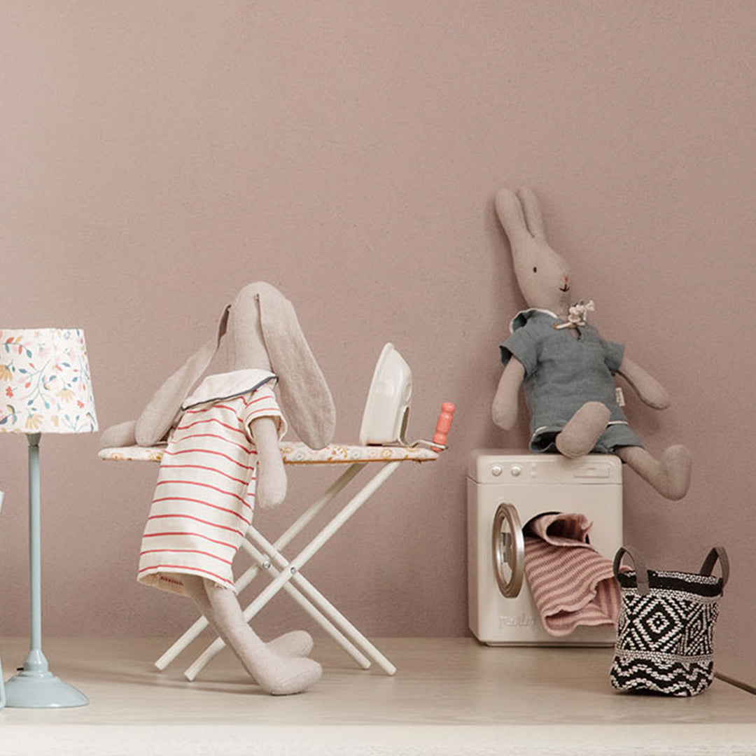 Die Kaninchen- und Hasenkollektion besteht aus weichem, natürlichem Leinen- und Baumwollstoff, das verleiht eine schöne Haptik und Optik. Dieser Hase trägt ein schönes gestreiftes Kleid im Matrosen-Stil.