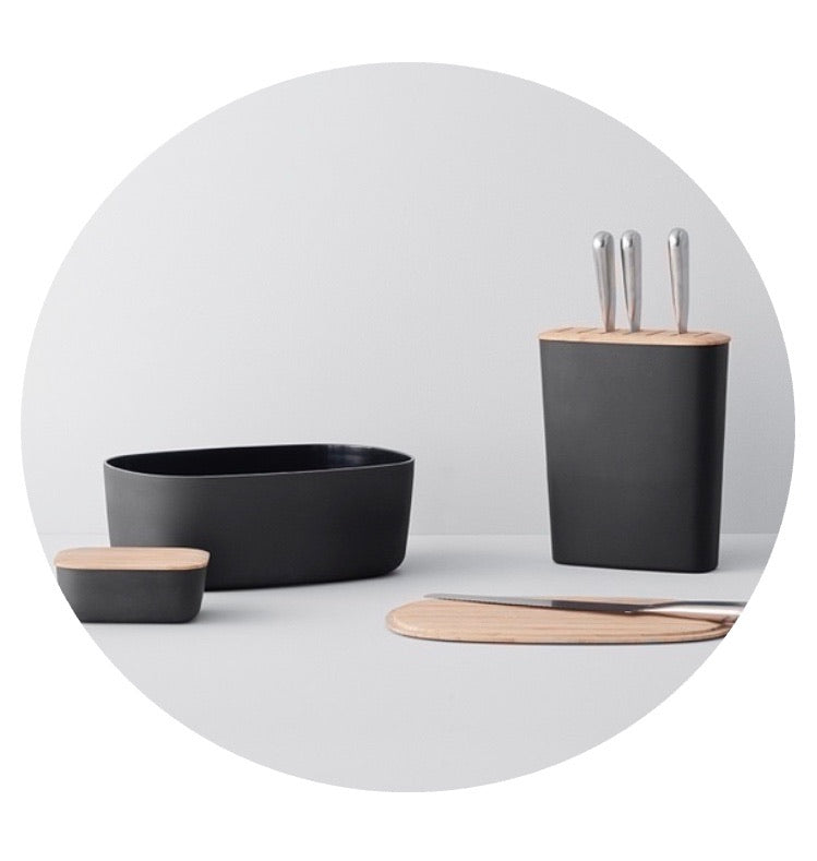 Der neue Messerblock von RIG-TIG ist sowohl eine praktische als auch einfache Lösung zur Aufbewahrung der wichtigsten Küchenutensilien: Der Messer! Das Äußere des Messerblocks ist aus Melamin hergestellt und in Schwarz oder Weiß erhältlich. Mit seinem soliden Gewicht steht er stabil auf jeder Arbeitsplatte, wenn Sie beim Kochen nach einem Küchenmesser greifen wollen. Der obere Teil des Messerblocks wird aus nachhaltigem Bambus hergestellt und hat 7 Schlitze, die für jedes Messer einen geeigneten Platz bereithalten.