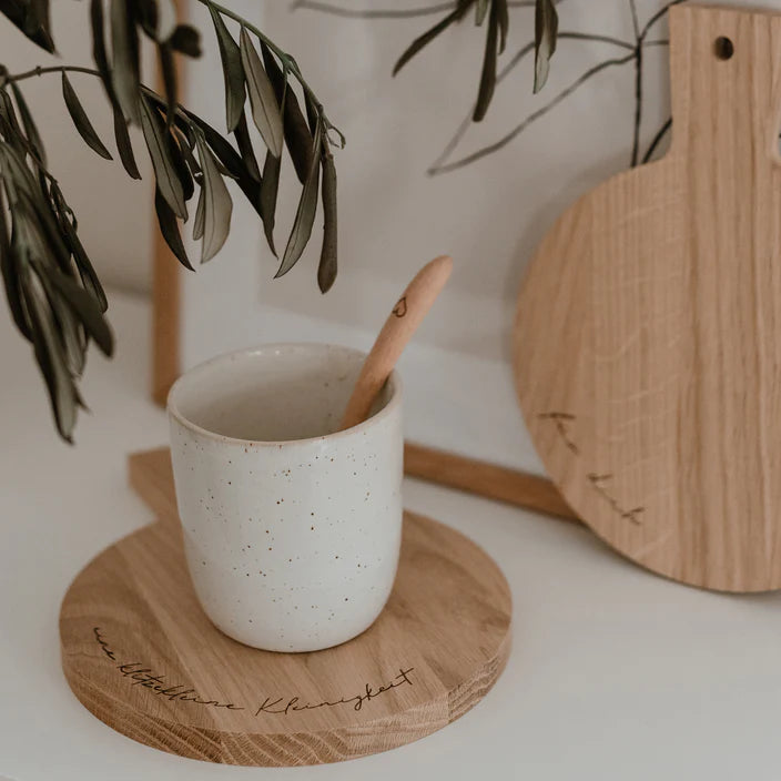 Unsere Mini Brettchen Kleinigkeit Eiche im 2er Set sind die perfekten Begleiter zum Servieren von Kleinigkeiten oder zum Servieren von Deinem morgendlichen Kaffee. Das Set besteht aus zwei unterschiedlichen Designs. Das erste Brettchen ziert der handgeschriebene Schriftzug "für Dich" und das zweite der Spruch "eine klitzekleine Kleinigkeit". Auf der Rückseite der Brettchen ist jeweils ein kleines Eulenschnitt-Logo eingraviert. Die Brettchen sind aus hochwertigem Eichenholz gefertigt. Die Mini Schneidebrettchen haben einen Durchmesser von 18 cm und eine Stärke von 1,5cm. Du bist noch auf der Suche nach einem besonderen Geschenk? Wer freut sich nicht über ein tolles Holzbrettchen, auf dem sogar schon ein liebevoll selbst gebackenes Törtchen von Dir drauf dekoriert ist? Ein absoluter Allrounder, der Dir oder den Beschenkten immer wieder ein Lächeln ins Gesicht zaubert und Dich rundum glücklich sein lässt.