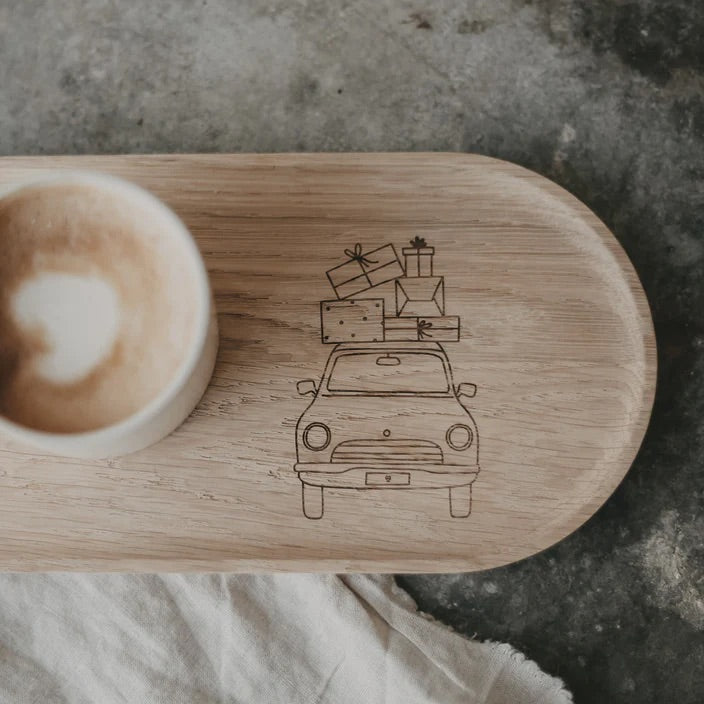 Entdecke unser charmantes Mini Tablett Weihnachtsauto aus Eichenholz – das perfekte Accessoire für deine weihnachtliche Dekoration. Das liebevoll handgezeichnete Weihnachtsauto wurde von uns entworfen und verleiht dem Tablett eine besondere, persönliche Note.