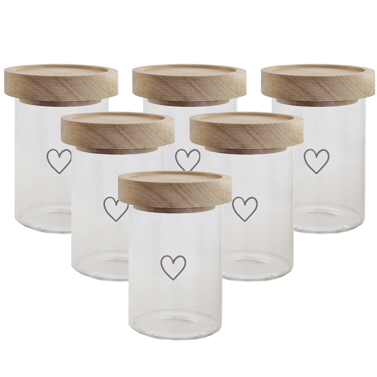 Entdecke unsere wunderschönen und praktischen Mini Vorratsgläser Herz schwarz im 6er Set aus Borosilikatglas mit Akazienholz Deckel.