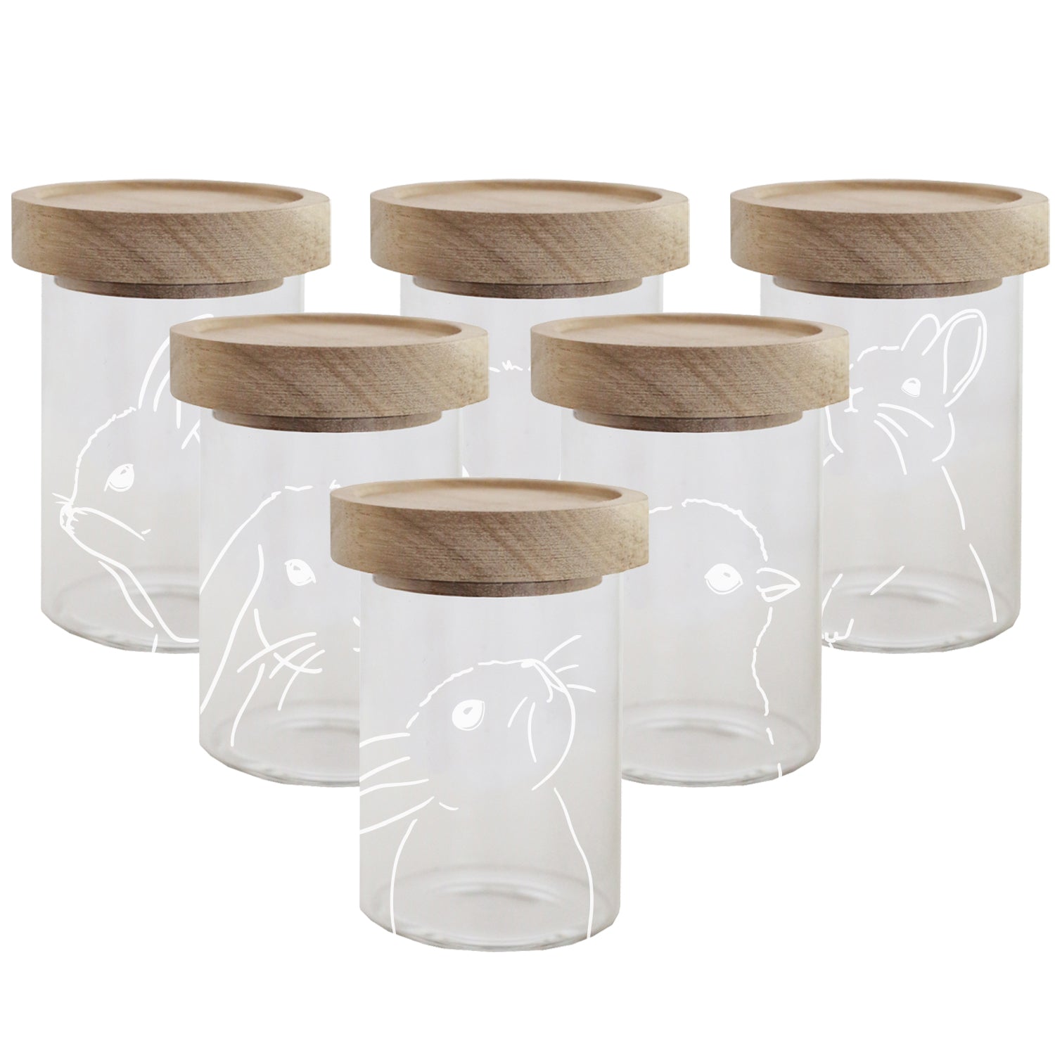 Entdecke unsere wunderschönen und praktischen Mini Vorratsgläser Ostern im 6er Set aus Borosilikatglas mit Akazienholz Deckel.