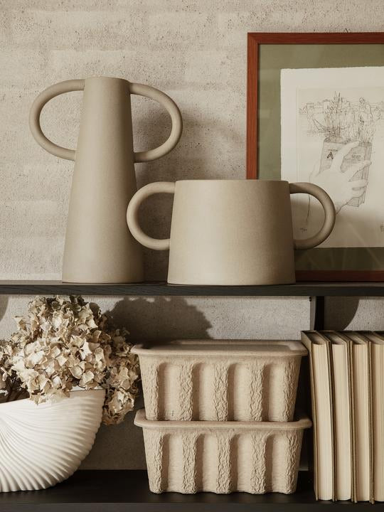 Diese aus 100 % recycelbarem Papierzellstoff hergestellte Box mit Deckel bietet dir eine handliche, leichte und stapelbare Aufbewahrungslösung. In den langlebigen und biologisch abbaubaren Boxen kannst du Accessoires sicher aufbewahren, du kannst damit für Ordnung im Homeoffice sorgen oder kleinere Steine und Spielzeug im Kinderzimmer ordentlich unterbringen.