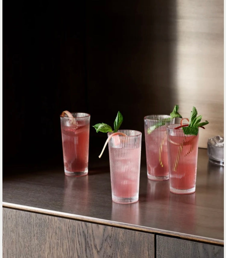 Hohe, schlanke Trinkgläser, die als Ergänzung zum Pilastro Shaker geschaffen wurden, aber selbstverständlich auch als große Wassergläser, Gläser für Eiskaffee oder für heißen Kaffee und Tee verwendet werden können. Diese Longdrinkgläser haben ein großes Volumen und sind für Getränke konzipiert, bei denen das Servieren zu etwas Besonderen gemacht werden soll. Hinter dem Pilastro-Design steht der Designer Francis Cayouette. Als Inspirationsquelle diente ihm der Art-Déco-Stil der 1920er-Jahre. Das Design mit seiner geriffelten Form ist dezent und elegant zugleich. Die Gläser sind robust in ihrer Formgebung und können in der Spülmaschine gespült werden, wodurch sie sowohl für den Alltag als auch für besondere Anlässe perfekt geeignet sind.