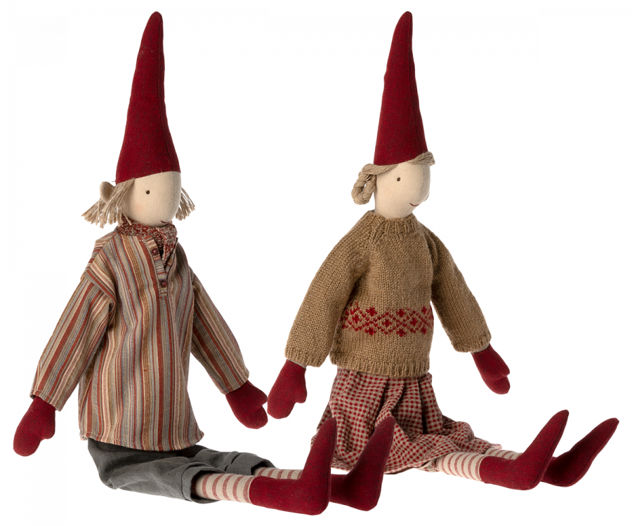 Pixies Größe 4 - eine Kollektion von zwei einzelnen Pixies. Alle in kuscheliger Weihnachtskleidung.