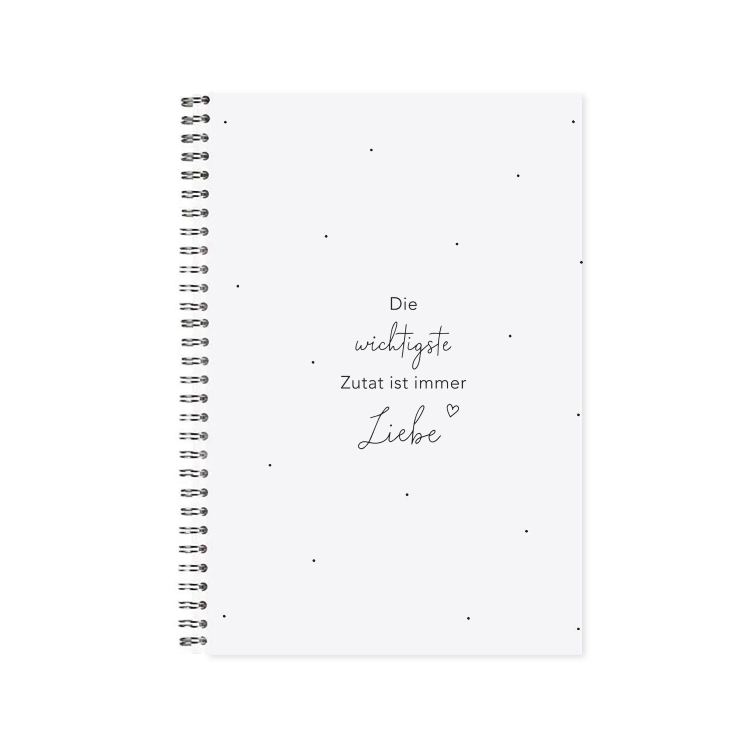 Endlich ist es soweit! Unser Rezeptbuch Wichtigste Zutat ist da! Du möchtest die Lieblingsrezepte von Dir und Deinen Lieben immer schön im Blick behalten? Nichts leichter als das! Unser minimalistisches Rezeptbuch Wichtigste Zutat hilft Dir dabei. Es hat Platz für 48 Rezepte. Die tolle große Ringbindung macht das Umblättern super leicht und das Lieblingsrezept bleibt beim Kochen problemlos offen liegen ohne nerviges Zuklappen:). Unser Kochbuch kommt im gewohnt schlichten schwarz-weißem Design und passt damit super zu jedem Kochliebhaber. Das Format ist DIN A5 (21 x 14,8 cm). Die Oberfläche des Rezeptbuchs ist seidig-matt, sodass keine störenden Spieglungen auftreten können.