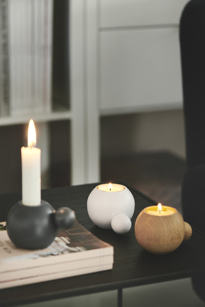 Der RoundNRound Kerzenhalter hat eine Doppelfunktion. Eine Seite für Standardkerzen, eine für Teelichter. Es ist von den klassischen schwedischen Weihnachtskerzenhaltern inspiriert.