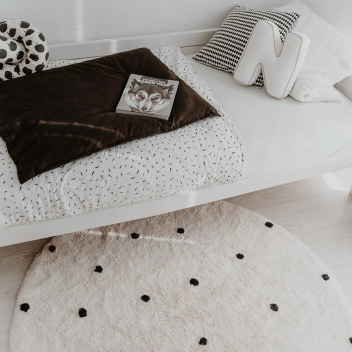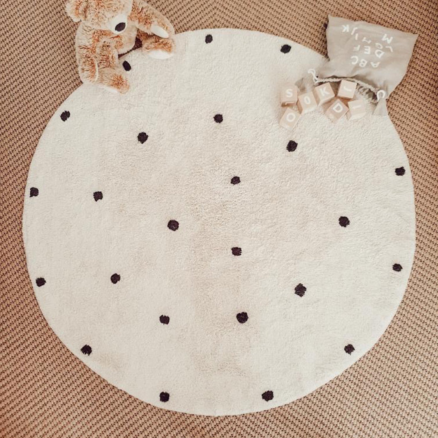 Unser runde Webteppich Punkte aus Baumwolle ist ein totales Highlight für jeden Raum! Seine super weiche Haptik und unser charakteristisches Punktedesign machen ihn zu einem ganz besonderen Liebhaberstück. Ob im Schlafzimmer, im Kinderzimmer oder im Büro – der Teppich Punkte sorgt überall für Wohlfühl-Momente. Und nicht nur das: er ist nicht nur optisch ein Highlight, sondern zudem auch besonders pflegeleicht, denn Du kannst den Teppich einfach in der Waschmaschine waschen. Das Format von ca. 140 cm Durchmesser ist ideal um es sich auch einmal auf dem Teppich mit den Kleinen bequem zu machen.