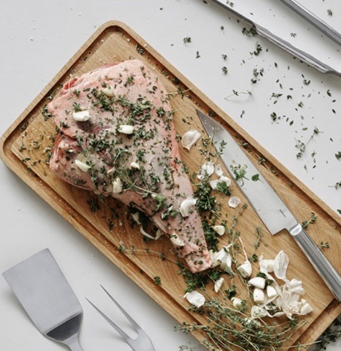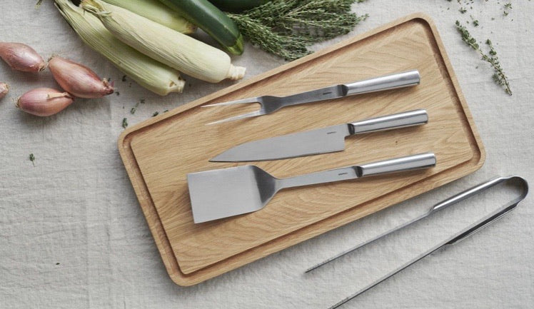 Der dänische Designer Søren Refsgaard entwarf dieses elegante Schneidebrett mit der praktischen Saftrille. Für das massive Schneidebrett wurde europäische weiße Eiche verwendet, die sich durch einen hohen Inhalt an Gerbsäure auszeichnet. Damit ist das Brett natürlich antibakteriell. Es wurde außerdem gereinigt und mit einem lebensmitteltauglichen Öl behandelt, damit die Oberfläche länger geschützt ist. Eiche ist ein sehr haltbares Naturmaterial, das Ihre Messer schont und deren Haltbarkeit verlängert.