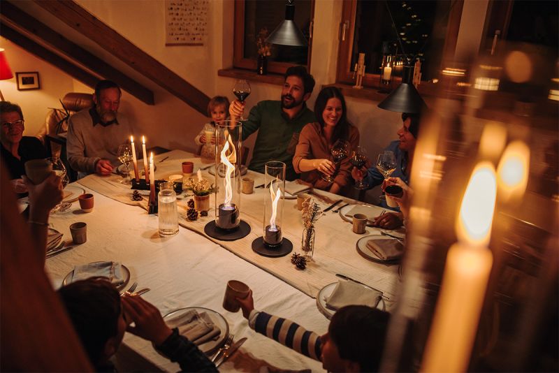 SPIN - Wohlige Wärme und geselliges Beisammensein sind die unverwechselbaren Eigenschaften des Feuers, die uns seit jeher in seinen magischen Bann ziehen. SPIN fängt genau diese einzigartige Lagerfeueratmosphäre auf spektakuläre Art und Weise in einem Glaszylinder ein und lässt deinen Balkon, deine Terrasse, dein Wohnzimmer oder deinen Esstisch im sanften Licht der Flammen erstrahlen.