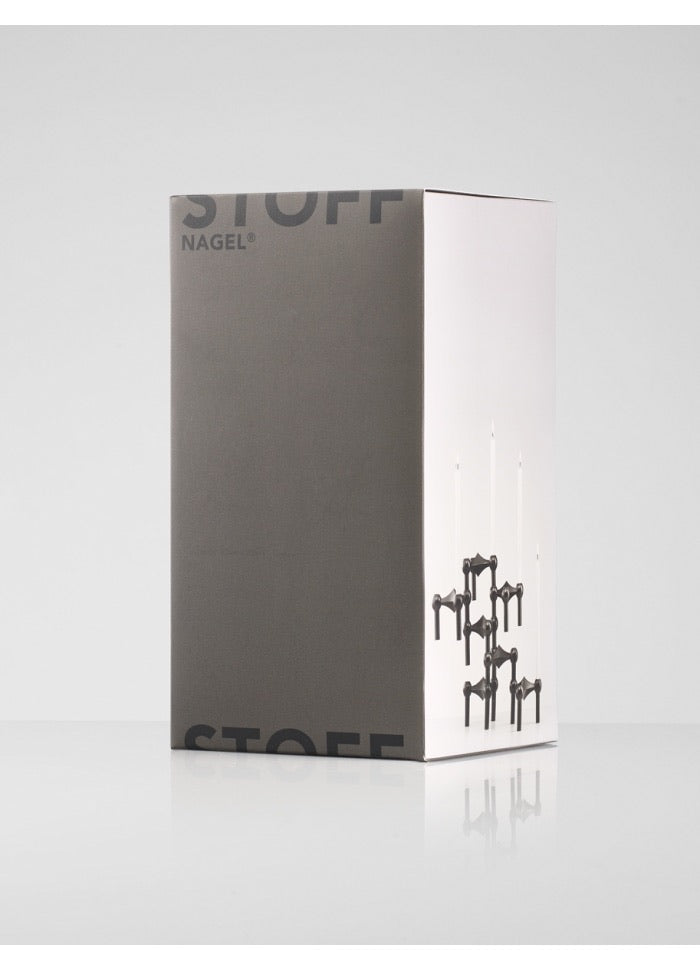 Es war damals die außergewöhnliche, geometrische Form, die den Kerzenhalter Ende der 60er Jahre zum Gesprächsthema in der Kunst- und Designszene machte und ihn in unzählige Häuser und Wohnungen brachte. Die Idee dazu kam Hans Nagel bei einem Sturz im Skiurlaub. Ihn faszinierte die Symmetrie, die drei seiner Finger nach dem Sturz im Schnee hinterlassen hatten so sehr, dass er daraus zusammen mit Werner Stoff den Stoff Nagel Kerzenhalter schuf.