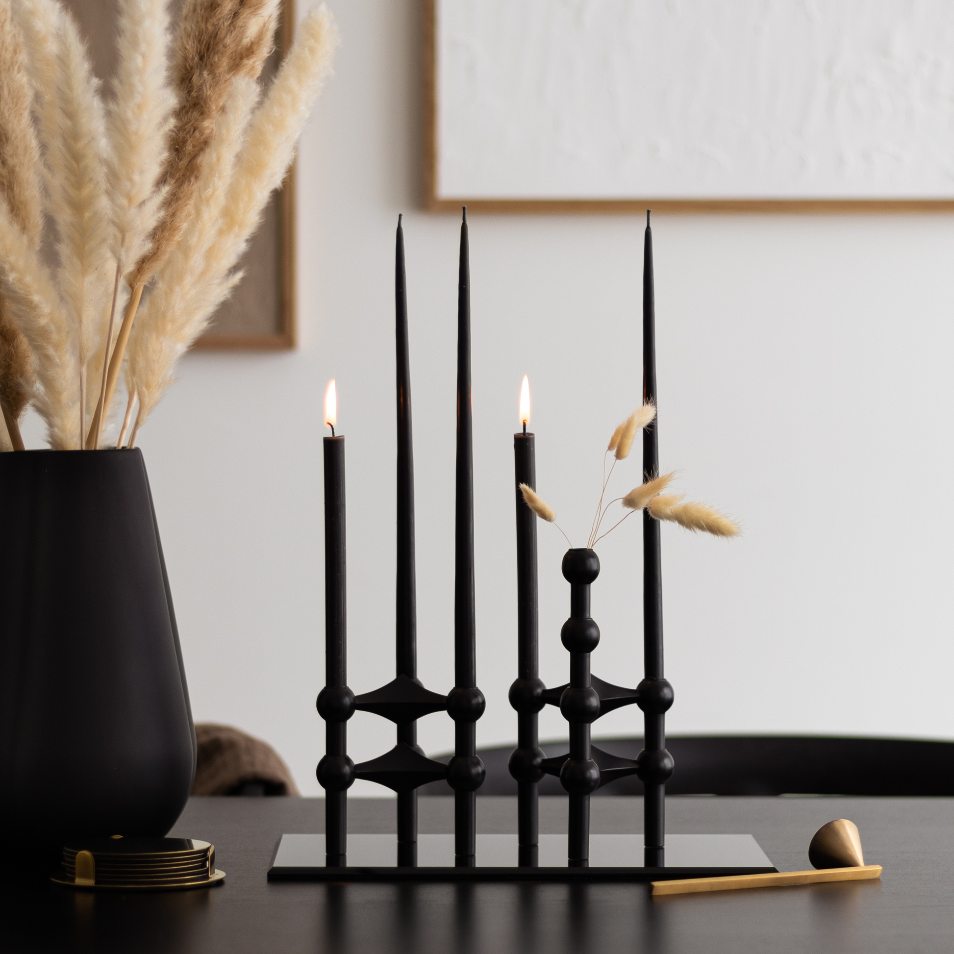 Der klassische Stoff Nagel Kerzenhalter ist eine Design-Ikone aus den 60er Jahren. Der stapelbare Kerzenhalter aus Messing, Chrom oder in mattem Schwarz wird nach Original-Entwürfen gefertigt und begeistert mit seinem zeitlosen Design und seiner unglaublichen Vielfältigkeit.