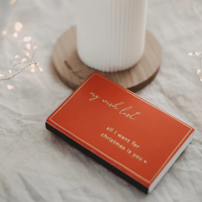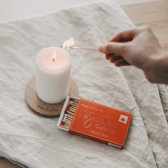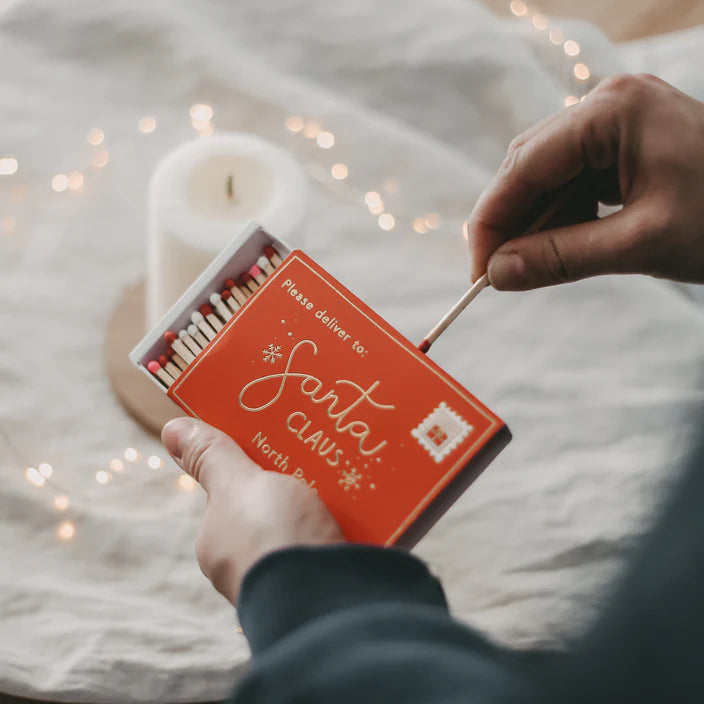 Unsere Streichhölzer Santa Claus zaubern nicht nur Wärme, sondern auch festliche Vorfreude in dein Zuhause. Die liebevoll gestaltete Schachtel in weihnachtlichem Rot erinnert an einen Brief an Santa Claus – perfekt bis ins Detail! Die Vorderseite ziert eine zauberhafte Briefmarke mit einem Geschenkmotiv, während auf der Rückseite deine persönliche "my wish list" verewigt ist: "All I want for christmas is you". Eine romantische Botschaft für deine Liebsten. Die Streichhölzer selbst glänzen mit farblich unterschiedlichen Zündköpfen in Rot, Rosa und Weiß. Ein wunderbares Geschenk für die schönste Zeit des Jahres!