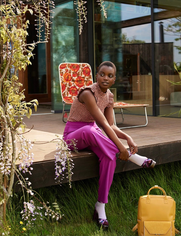 Ein Rucksack in Dawn Pink & Honey Gold mit verstellbaren Griffen. Die Tasche ist aus hochwertigem veganem Leder gefertigt und hat vorne eine echte Wildlederklappe. Das Innenfutter besteht aus einem coolen & schicken gestreiften Canvas und die goldenen Reißverschlüsse sind von YKK. Der Rucksack hat innen ein gepolstertes Laptopfach.