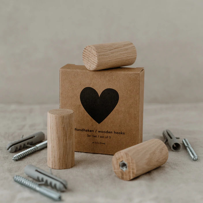 Jedes Set enthält 3 Wandhaken in unterschiedlichen Designs, 3 Dübel sowie 3 passende Schrauben. Eine Anleitung zum Anbringen findet ihr ebenfalls in unserer kleinen Herzverpackung!