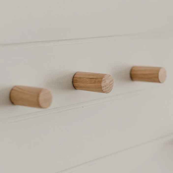 Ganz besonders schön im Eingangsbereich, im Badezimmer, in der Küche oder aber auch im Schlafzimmer. Unsere Wandhaken bringen in jeden Raum das gewisse Etwas. Alle Wandhaken sind aus Eichenholz gefertigt. Sie haben einen Durchmesser von 2,5 cm und eine Länge von 5 cm.