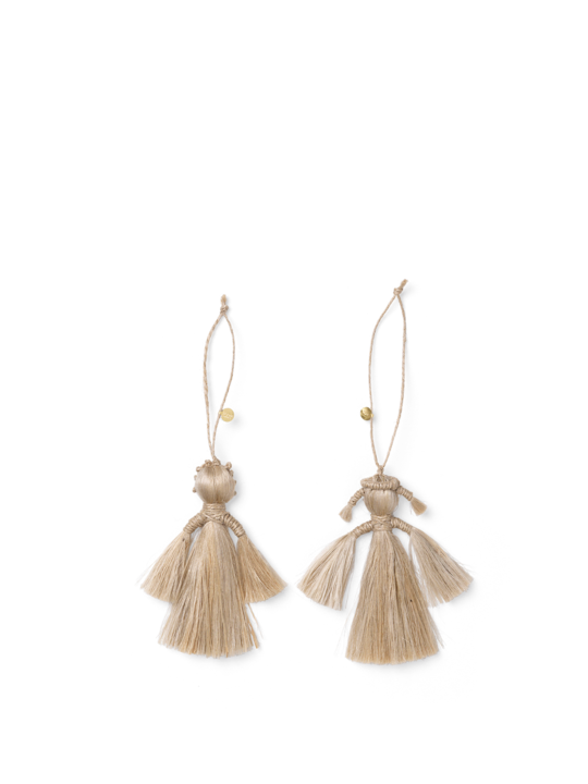 Dieses süße Engelspaar, das traditionelle Weihnachtssymbole in einer neuen und unerwarteten Form präsentiert, wird aus 100 % natürlicher Jute handgefertigt. Mit ihrem schlichten, natürlichen Ausdruck sind die Engel eine moderne und zugleich zeitlose Ergänzung in deiner Weihnachtsdekoration. Sie werden in einer kleinen Tasche aus FSC®-zertifiziertem Graspapier geliefert.